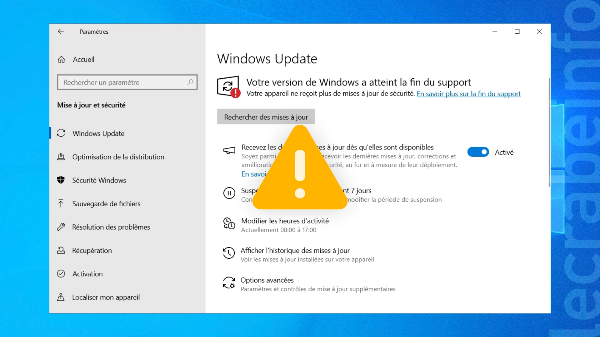 - Le message « Votre version de Windows a atteint la fin du support » apparaît à tord dans les Paramètres -> Windows Update.