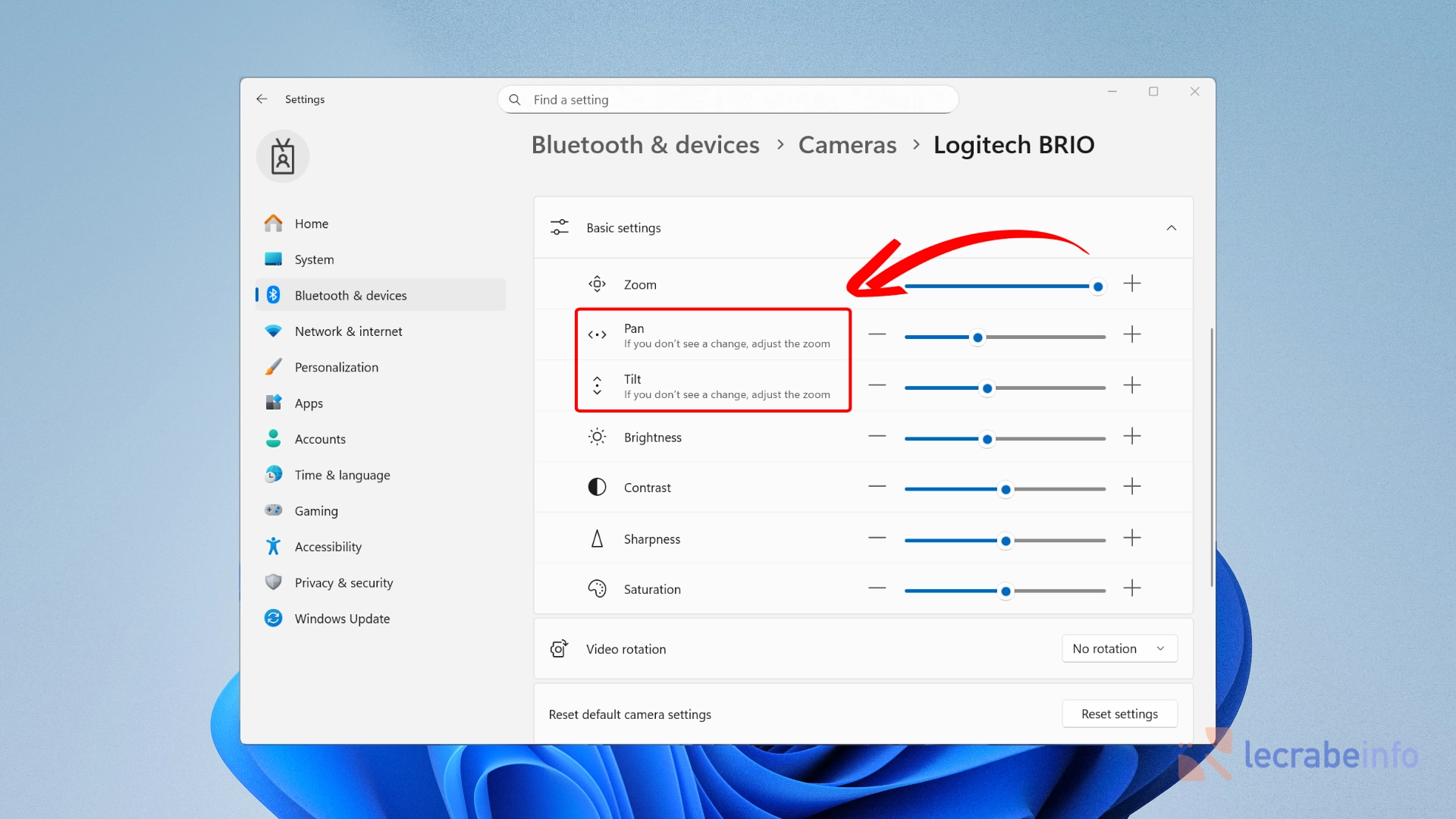 Pour accéder à ces nouveaux réglages, rendez-vous dans les Paramètres -> Bluetooth et appareils -> Caméras, puis sélectionnez votre caméra. Les contrôles de panoramique et d’inclinaison apparaissent dans la section « Paramètres de base » de la caméra sélectionnée.