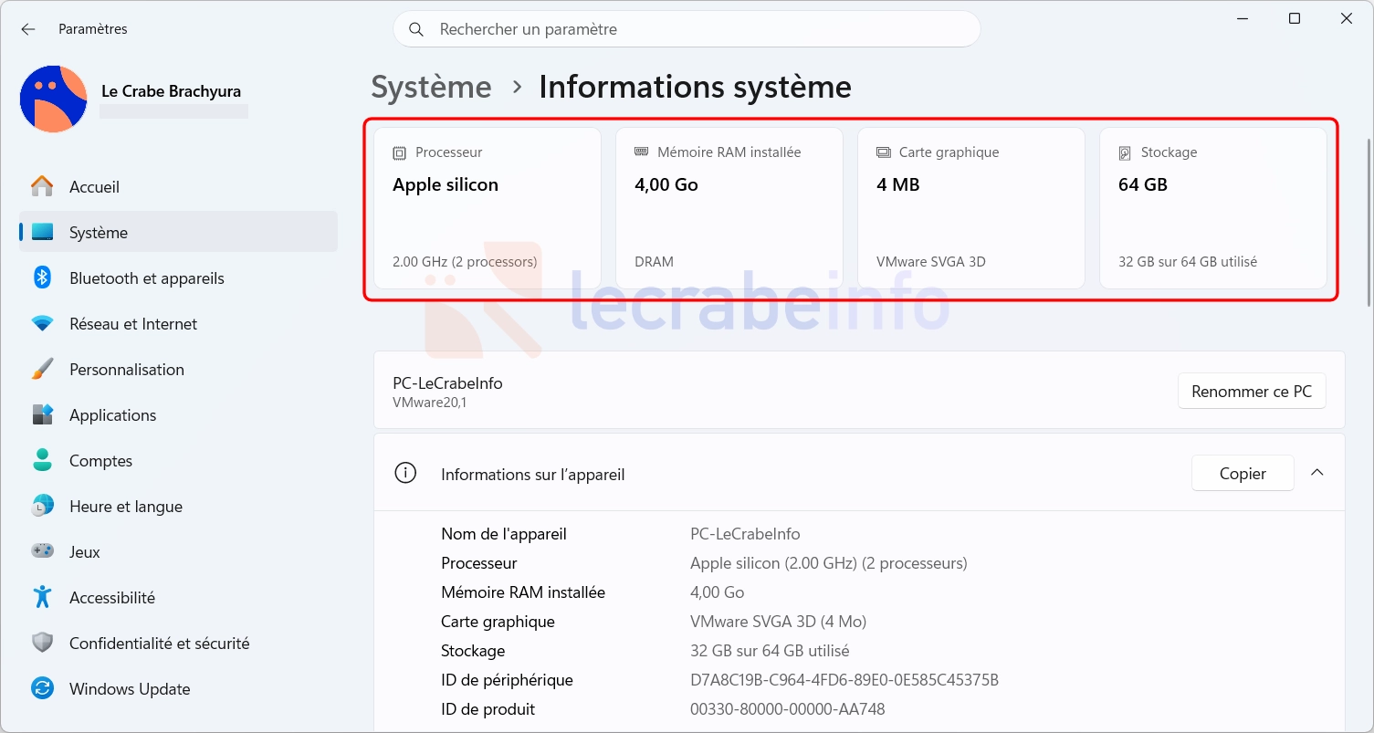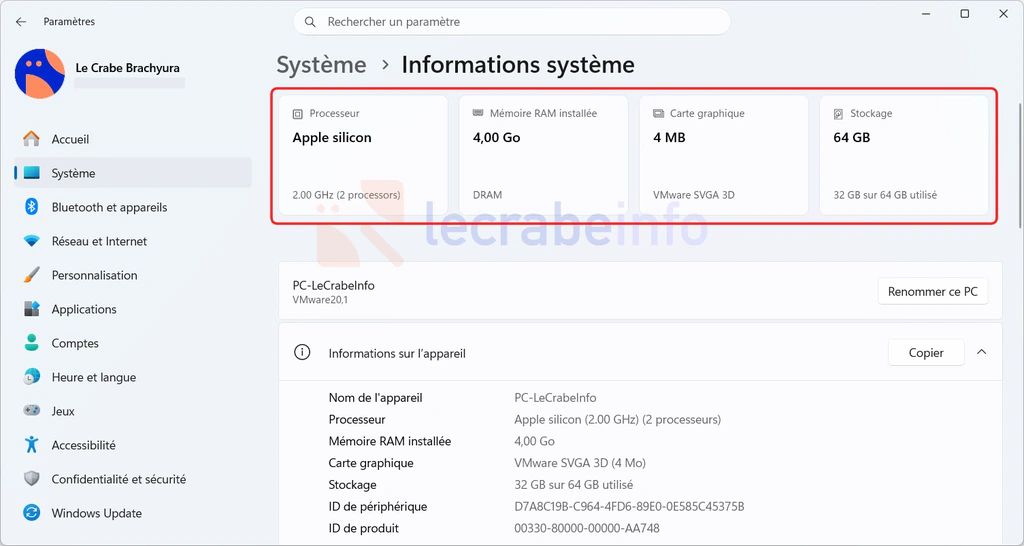 La nouvelle carte « Informations sur l’appareil » simplifiée / © Microsoft