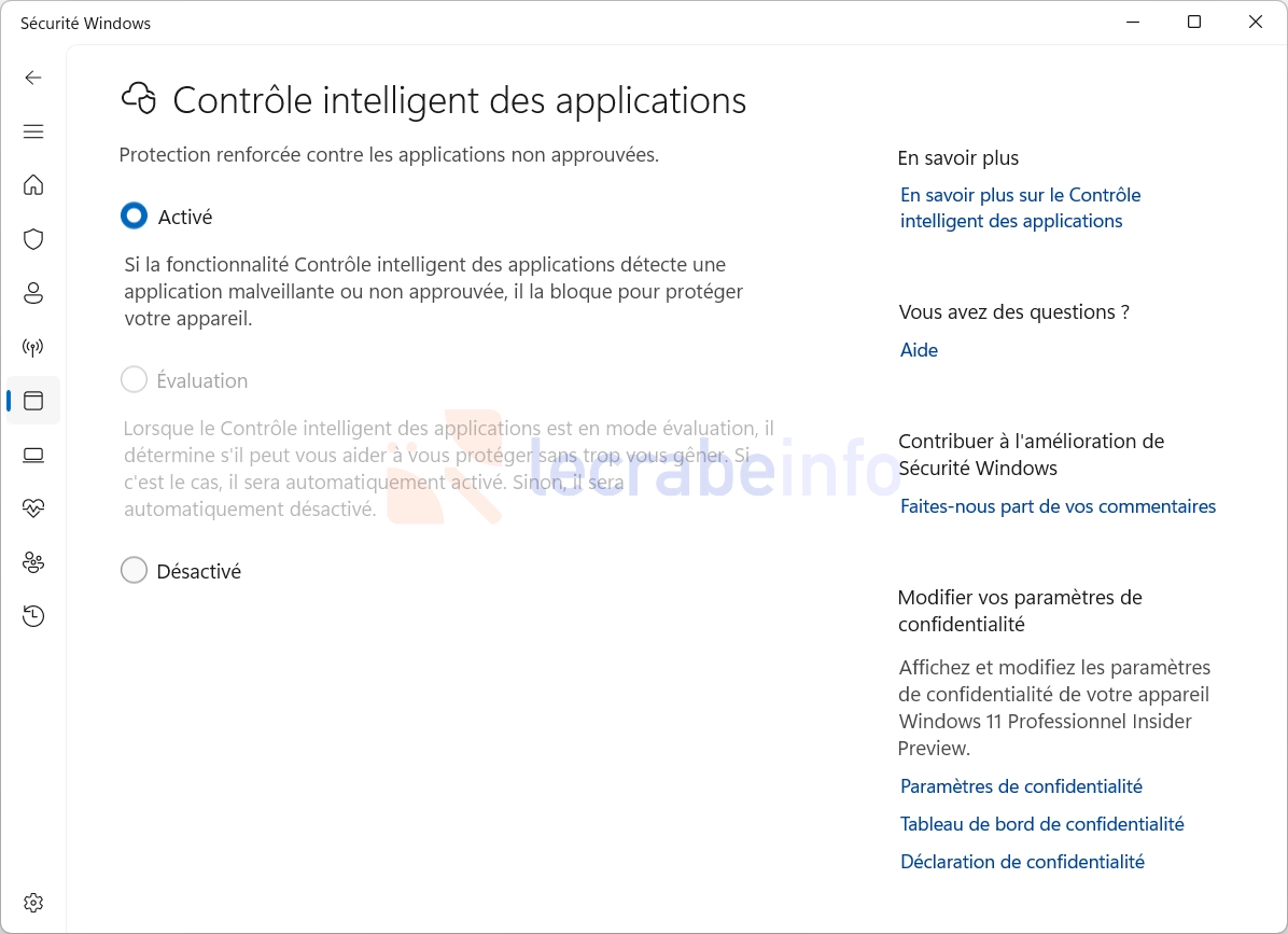 Le « Contrôle intelligent des applications » est maintenant activable/désactivable sans devoir réinstaller Windows / Le Crabe Info