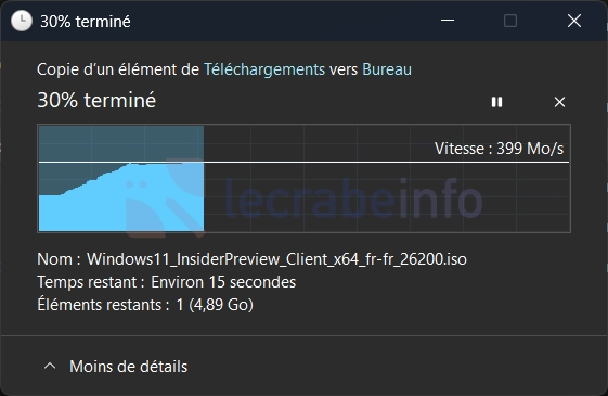 La nouvelle boîte de dialogue de copie de fichiers en mode sombre / Le Crabe Info