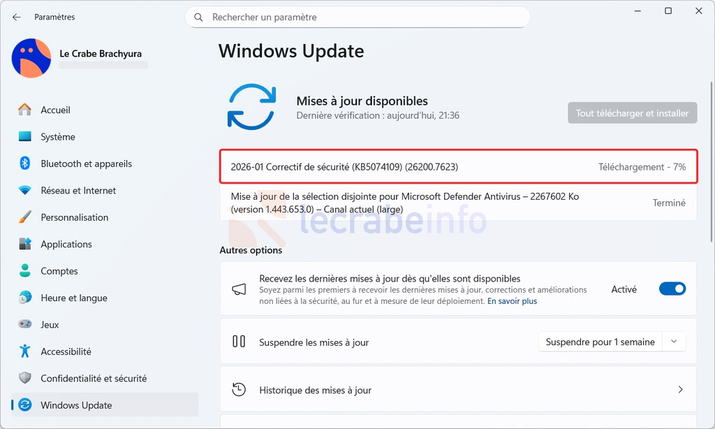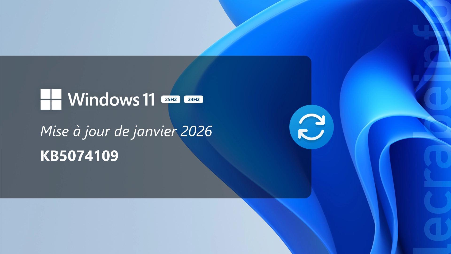 Ce 13 janvier 2026, Microsoft a déployé la mise à jour KB5074109 à destination de tous les ordinateurs sous Windows 11 version 25H2 et Windows 11 version 24H2.