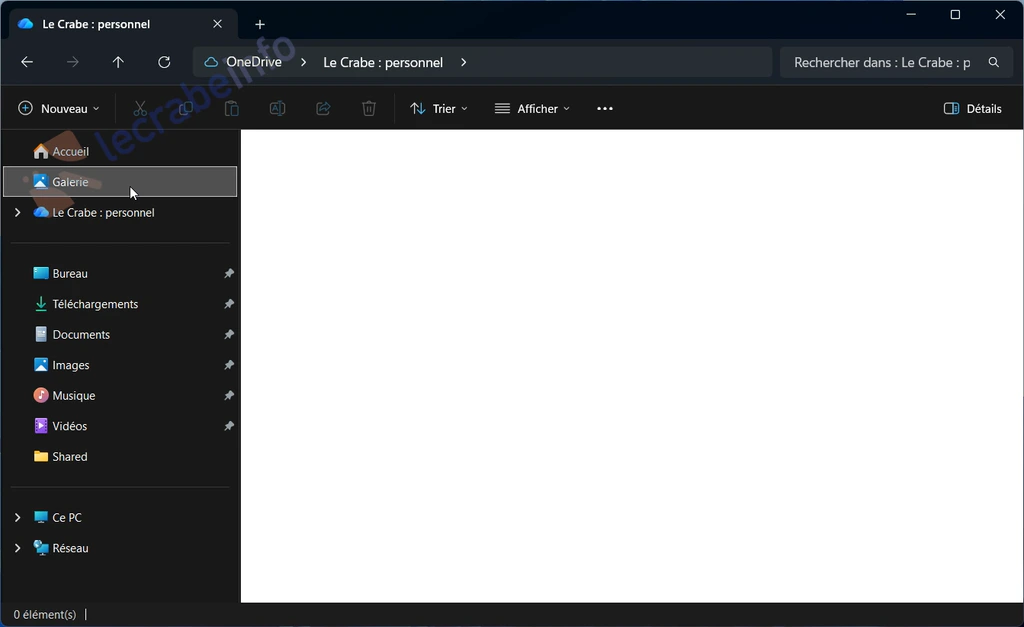 • naviguer vers ou depuis les sections « Accueil » ou « Galerie » (y compris si l’Explorateur de fichiers s’ouvre par défaut sur « Accueil ») ;
