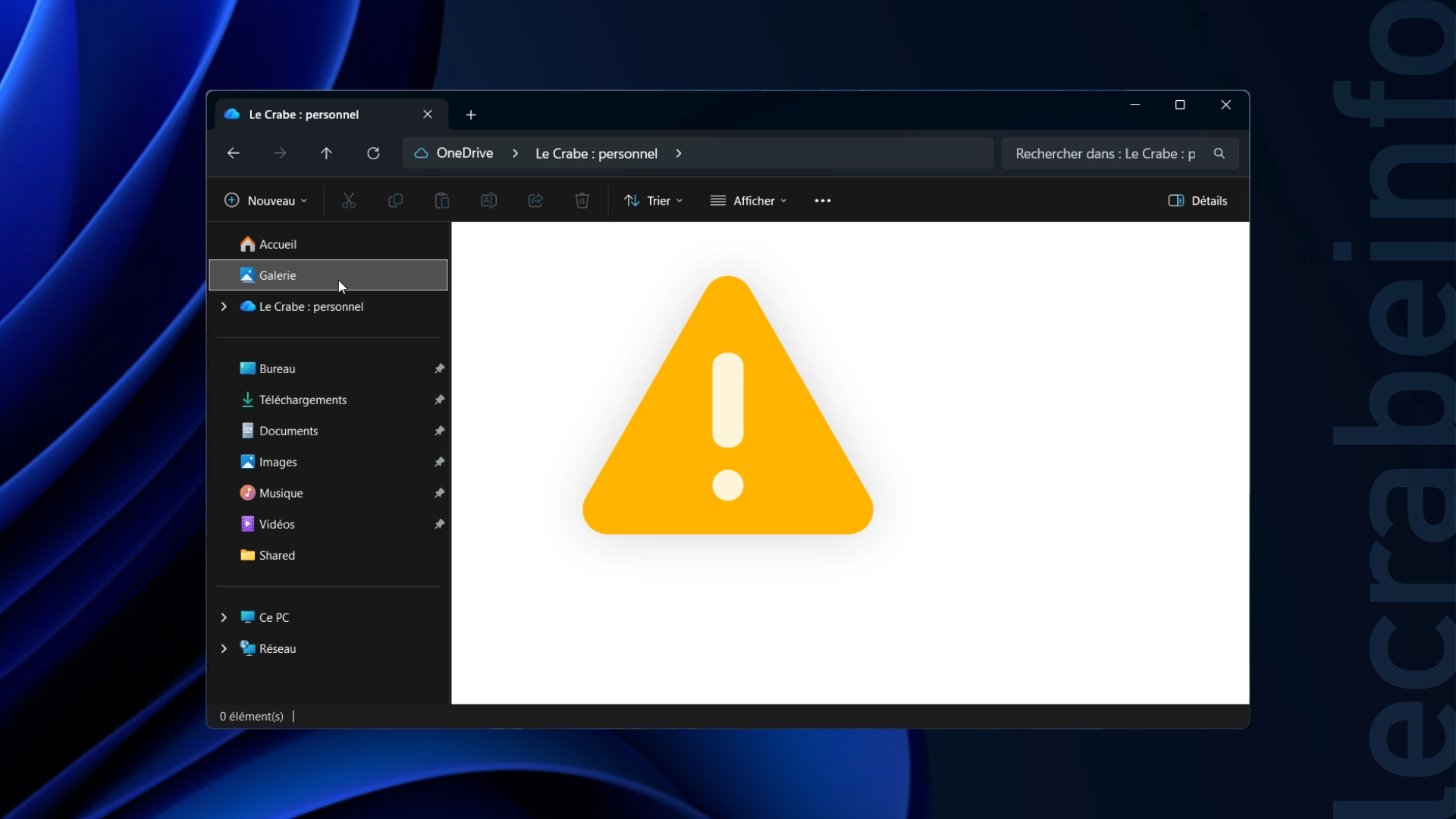• Le problème apparaît à l’ouverture de l’Explorateur de fichiers, mais aussi lors de certaines actions comme la navigation vers Accueil ou Galerie, la création d’un onglet ou l’activation du volet Détails.