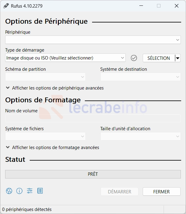 La fenêtre principale de Rufus s’affiche.
