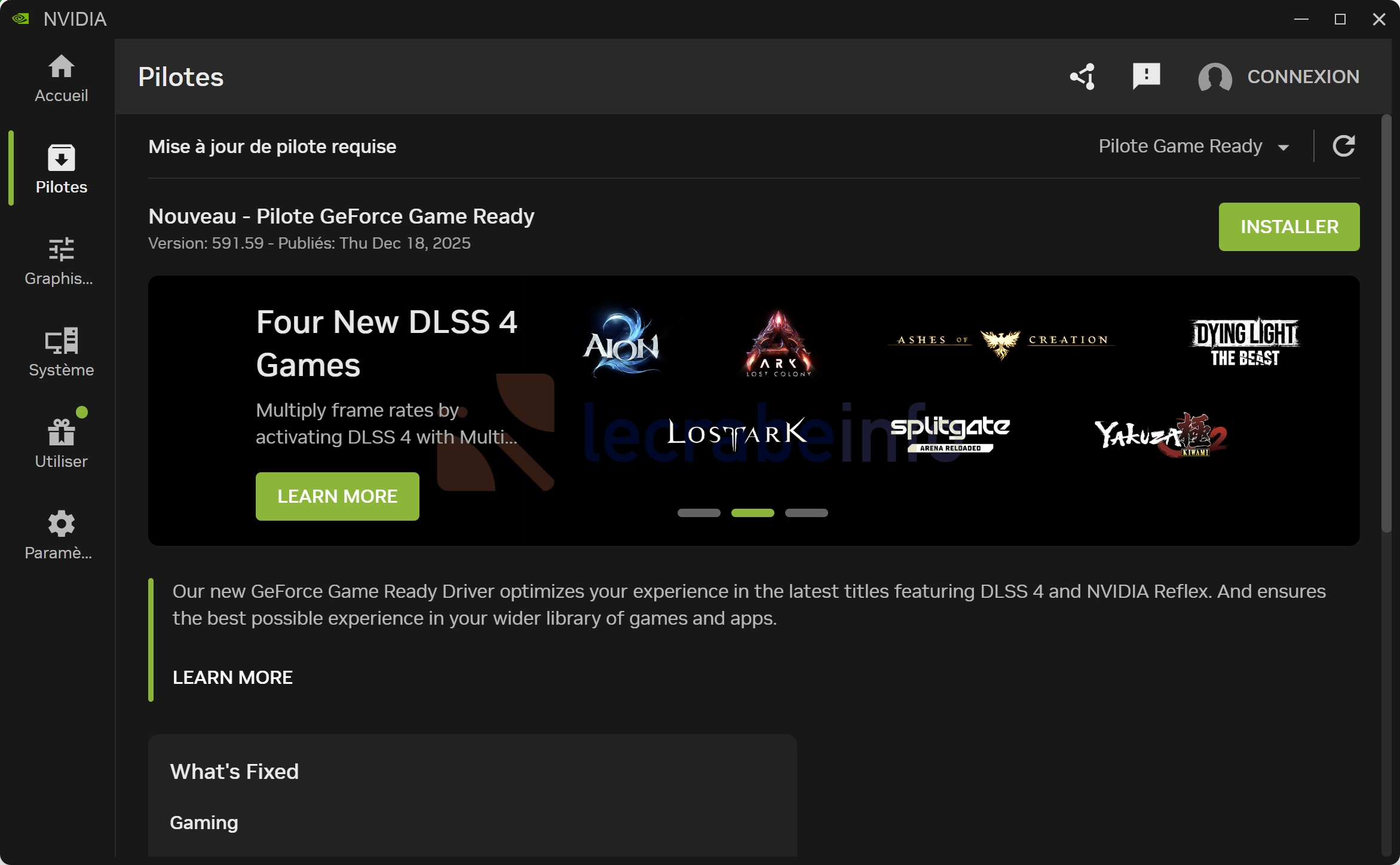 En cas d’échec, il est possible d’utiliser les outils proposés par les fabricants de composants (Intel, AMD, NVIDIA, Realtek…). Ces pilotes sont souvent plus récents et peuvent corriger certains problèmes spécifiques, notamment pour la carte graphique ou les composants réseau (Wi-Fi, Ethernet). Toutefois, ils sont plus génériques et peuvent ne pas être parfaitement adaptés à un PC de marque (ils doivent donc être utilisés avec prudence).