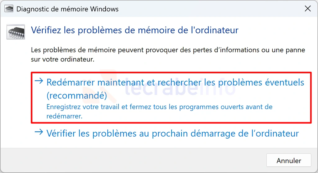 Cette vérification complémentaire permet de confirmer ou d’écarter plus solidement l’hypothèse d’un problème de mémoire vive.