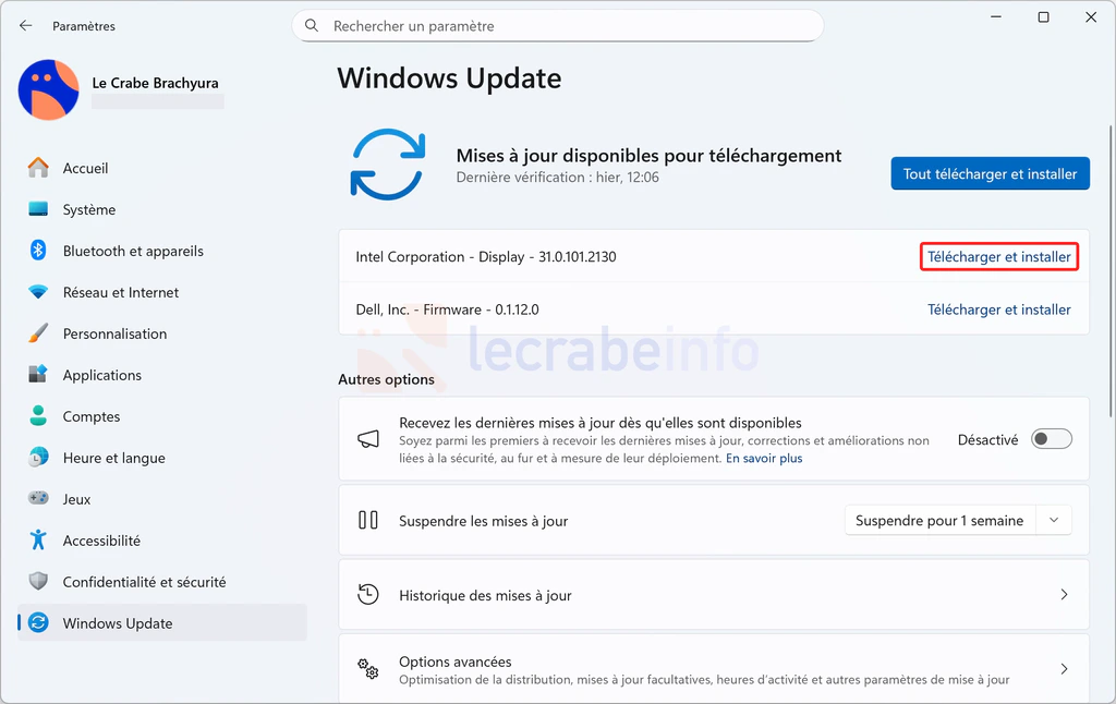 Avant d’envisager des actions plus ciblées, il est important de vérifier que Windows est entièrement à jour. Certaines mises à jour corrigent des problèmes de stabilité, des bugs du système ou des incompatibilités connues pouvant conduire à l’apparition d’écrans bleus ou noirs de la mort (BSOD) comme celui que vous rencontrez avec le code d’arrêt IRQL_NOT_LESS_OR_EQUAL.