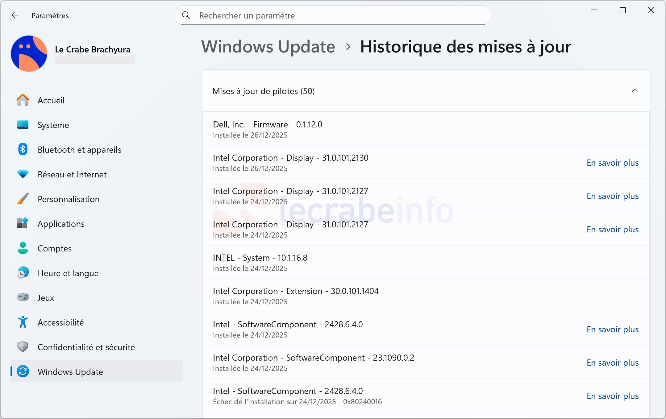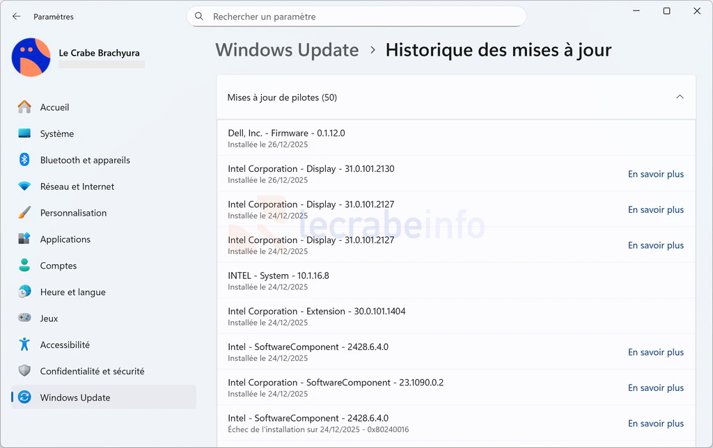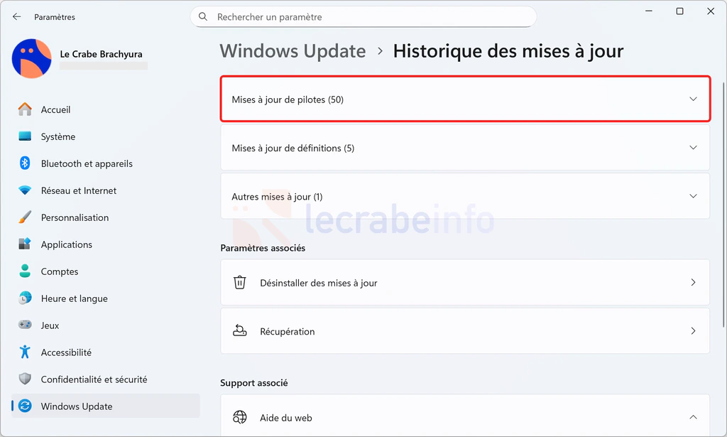 Vérifiez les mises à jour de pilotes via Windows Update :