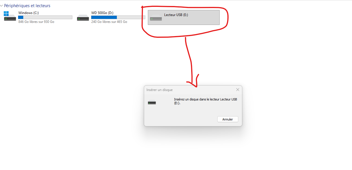 Le disque n’apparaît pas dans l’Explorateur de fichiers mais apparaît dans l’outil Gestion des disquesLettre de lecteur manquante, partition corrompue➡️ Ajouter une lettre de lecteur (solution n°1)