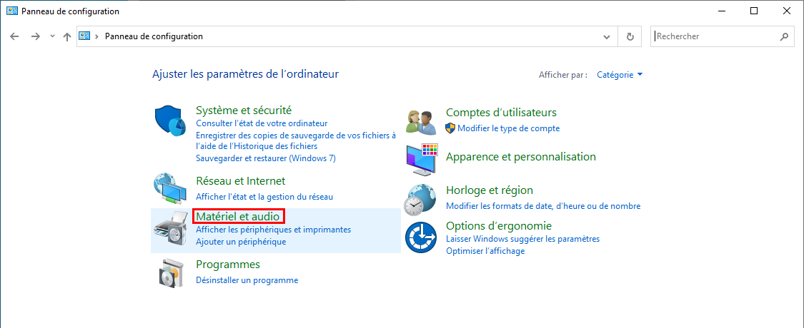 - Ouvrez le Panneau de configuration > Matériel et audio.