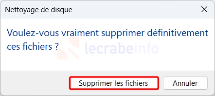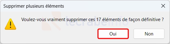 4. Cliquez sur Oui pour confirmer la suppression définitive des fichiers.