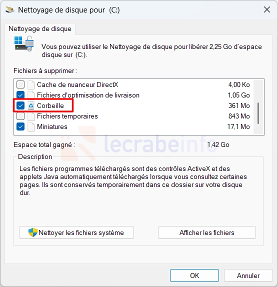 Méthode n°4 : vider la Corbeille avec l’outil Nettoyage de disque (cleanmgr)