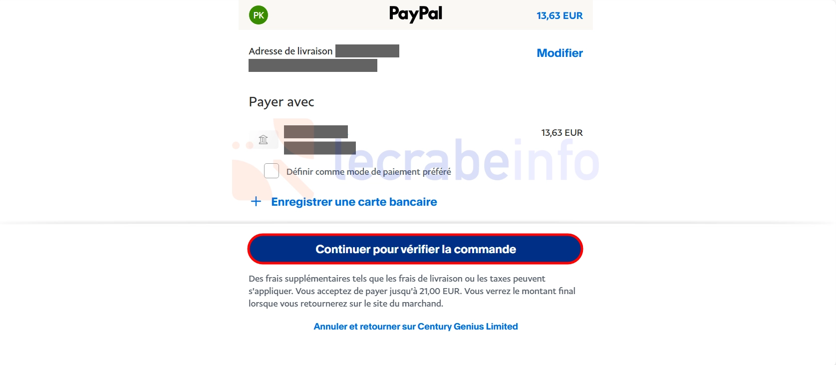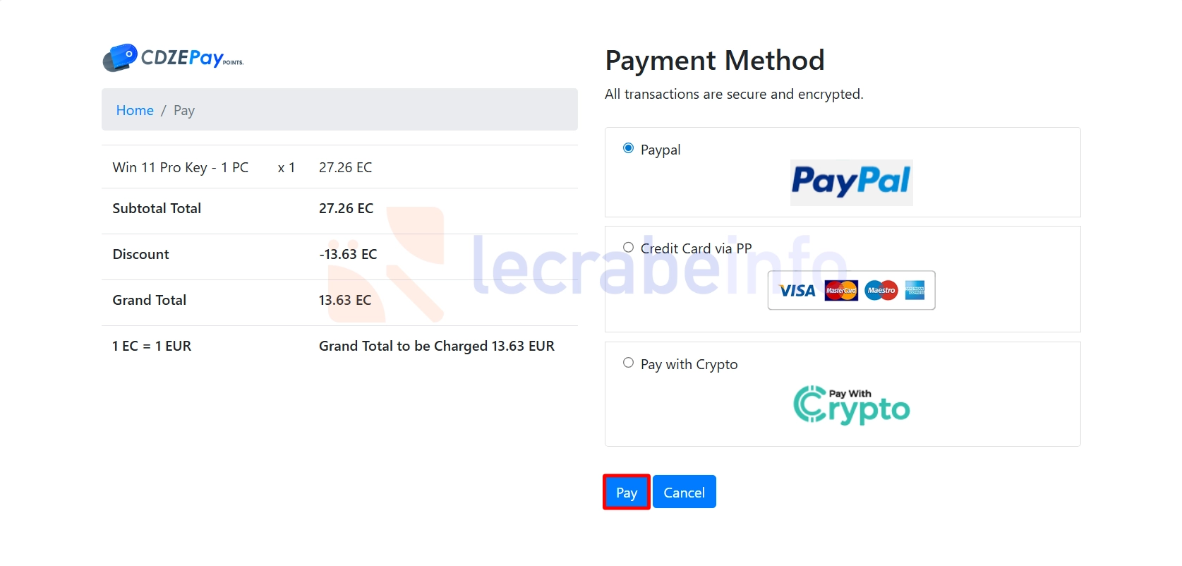 Choisissez votre moyen de paiement (PayPal ou carte bancaire via PayPal) puis cliquez sur Pay.
