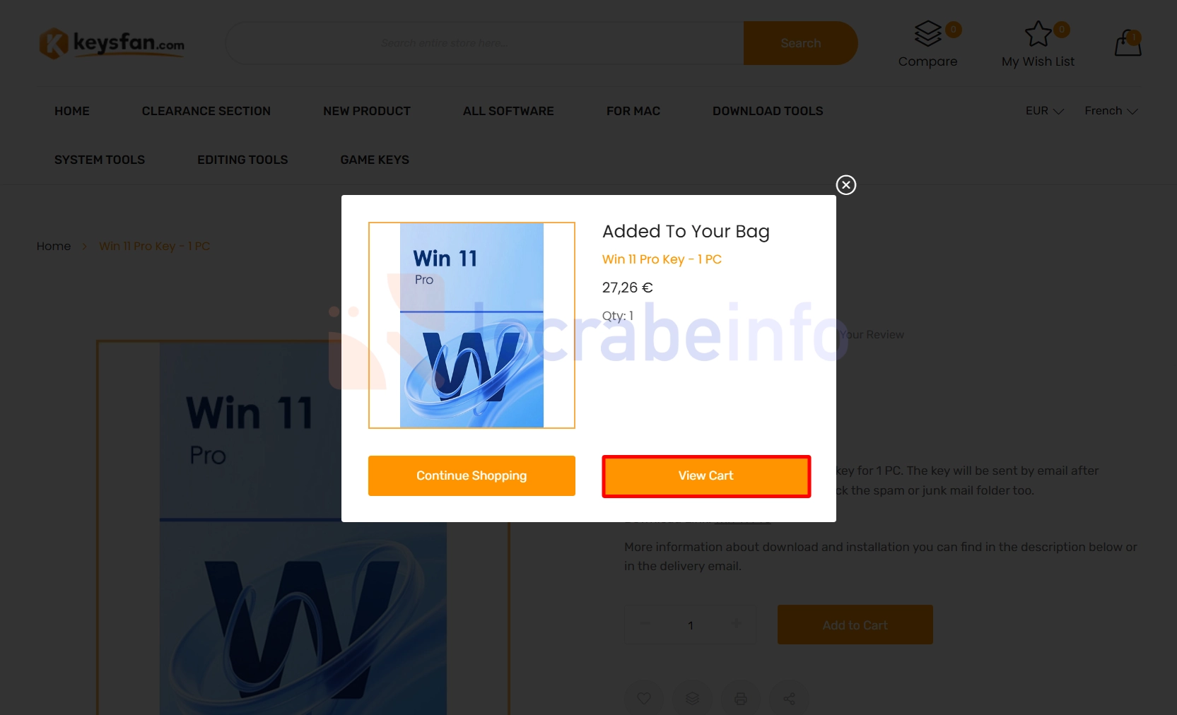 Rendez-vous sur le site de Keysfan, sur la page de Windows 11 Professionnel (keysfan.com).