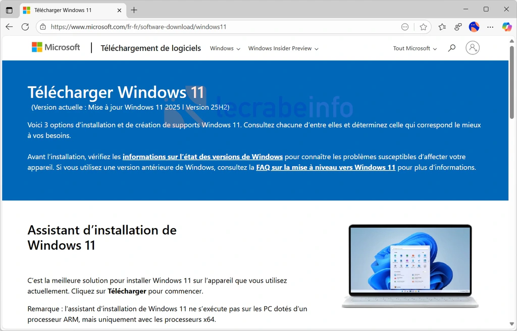 Pour télécharger l’ISO de Windows 11 25H2, la méthode la plus simple et la plus rapide est de passer directement par le site web de Microsoft :