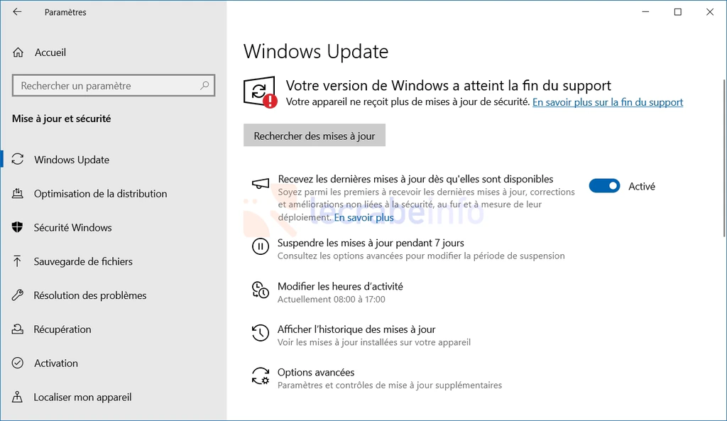 Votre version de Windows a atteint la fin du support