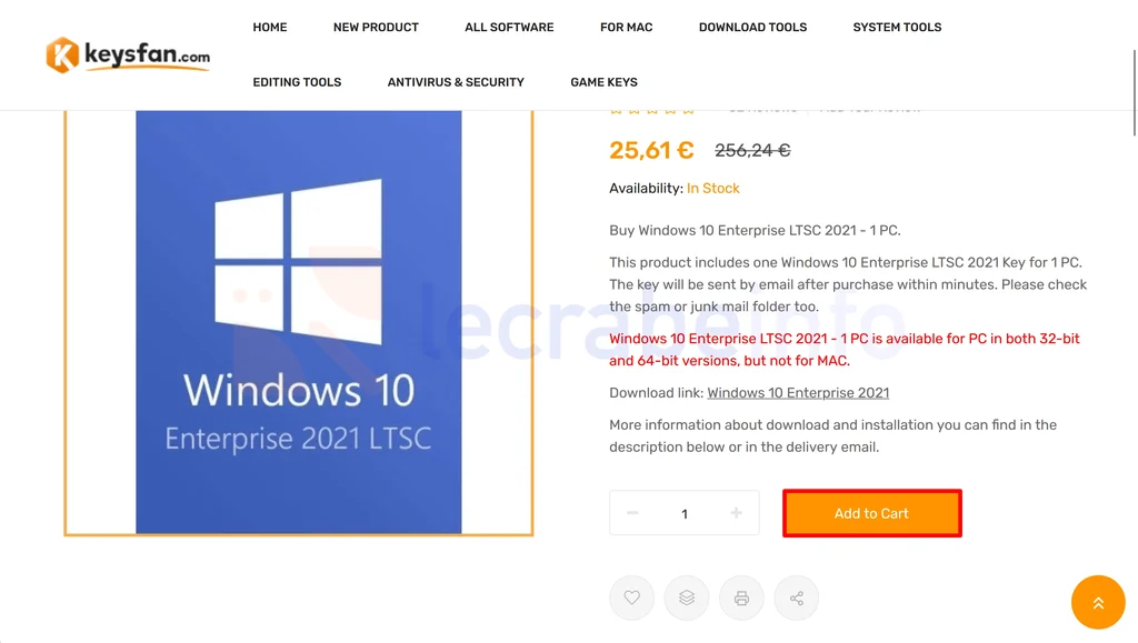 Windows 10 Entreprise LTSC n’est pas disponible via les canaux classiques comme les éditions Famille ou Professionnel. Il faut passer par des revendeurs spécialisés. Je vous recommande de passer par Keysfan qui propose des licences authentiques pour Windows 10 Entreprise LTSC 2021 ou 2019 à des prix attractifs (environ 25€) :