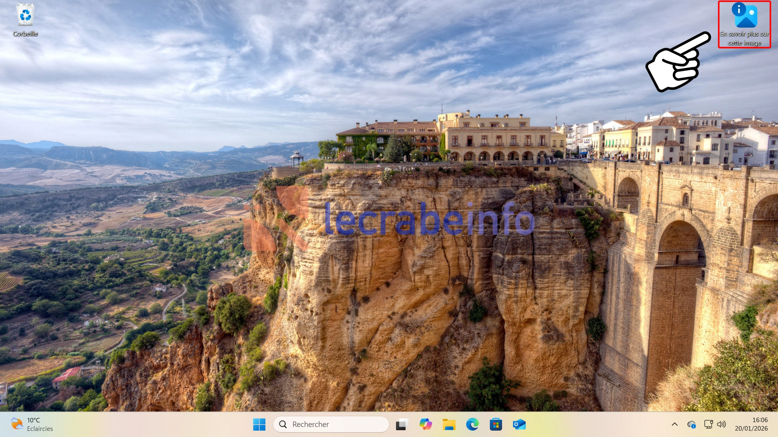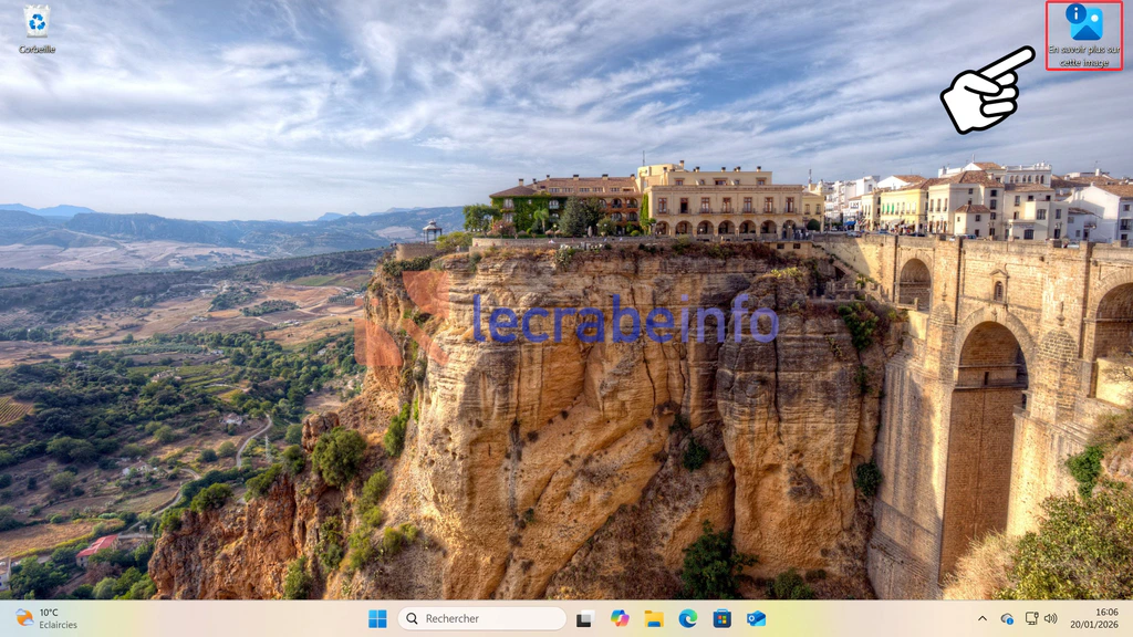 L’icône « En savoir plus sur cette image » sur le Bureau de Windows 11 / Le Crabe Info