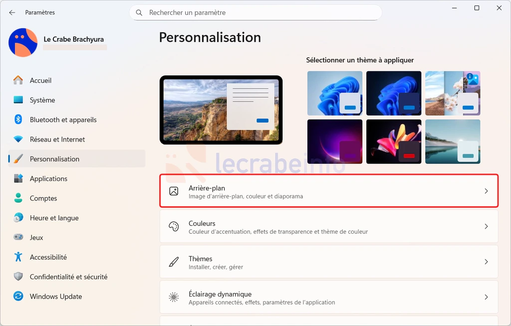 2. Cliquez sur PersonnalisationArrière-plan.